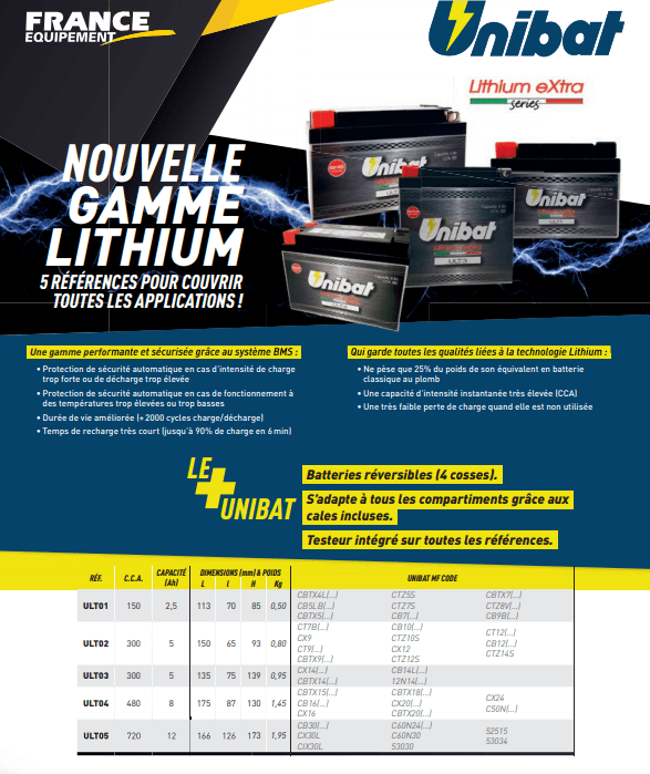 Batterie au lithium haute performance 4 pôles Unibat ULT02B